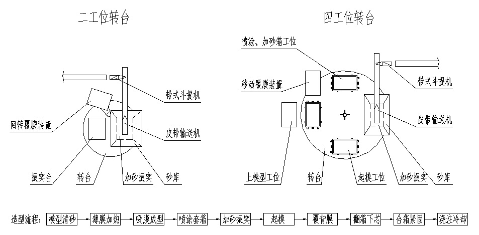 我公司設計的V法造型生產線,基本有五大系統組成,即造型系統,砂處理系統、真空系統,除塵系統、水循環系統組成。
