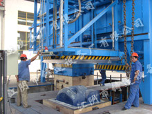目前我公司生產的^大的移動振實小車,臺面尺寸為3100×3900,激振力達32噸,型砂加砂箱超過20噸。可供5~40噸系列移動振實臺小車。