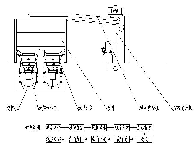 (1)型砂,一般采用干燥石英砂,不加粘接劑,不需混碾,故無需濕法鑄造用的型砂、混制、磁選、松砂等設備。