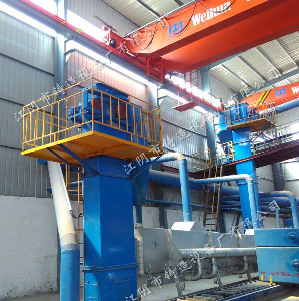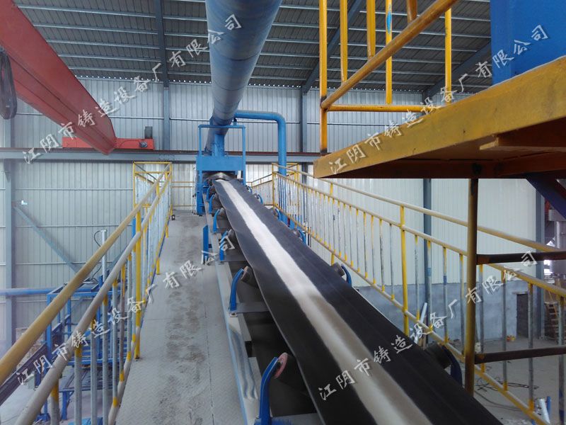 帶式斗提機將冷卻后的型砂提升至設在斗提機與儲